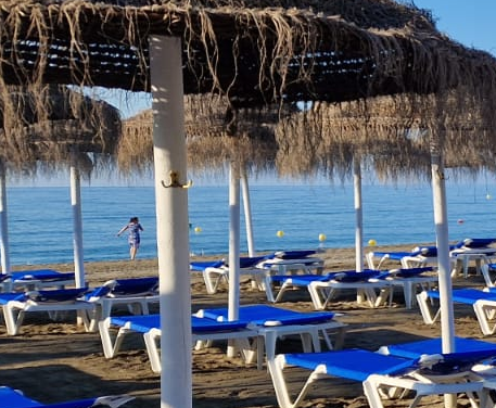 Cada espacio numerado del plano contiene una sombrilla y dos hamacas